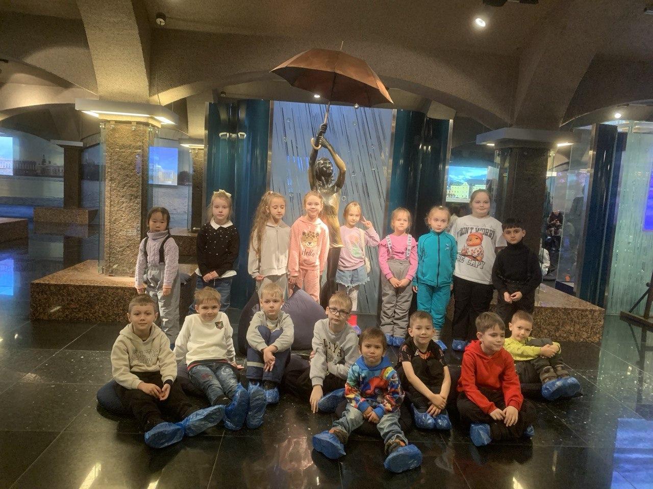 Дети нашей группы побывали в интерактивном музее «Вселенная воды». На огромных экранах они увидели, как прекрасна вода во всех ее проявлениях. Поговорили о свойствах воды и провели наглядный опыт с превращением воды в кристалл, поговорили о наводнениях, загадали желание, потерев черепаху, построили огромный мост, правильно ответили на все вопросы викторины, посмотрели фильм о путешествии капельки. И сфотографировались на память у скульптуры «Водовоз».