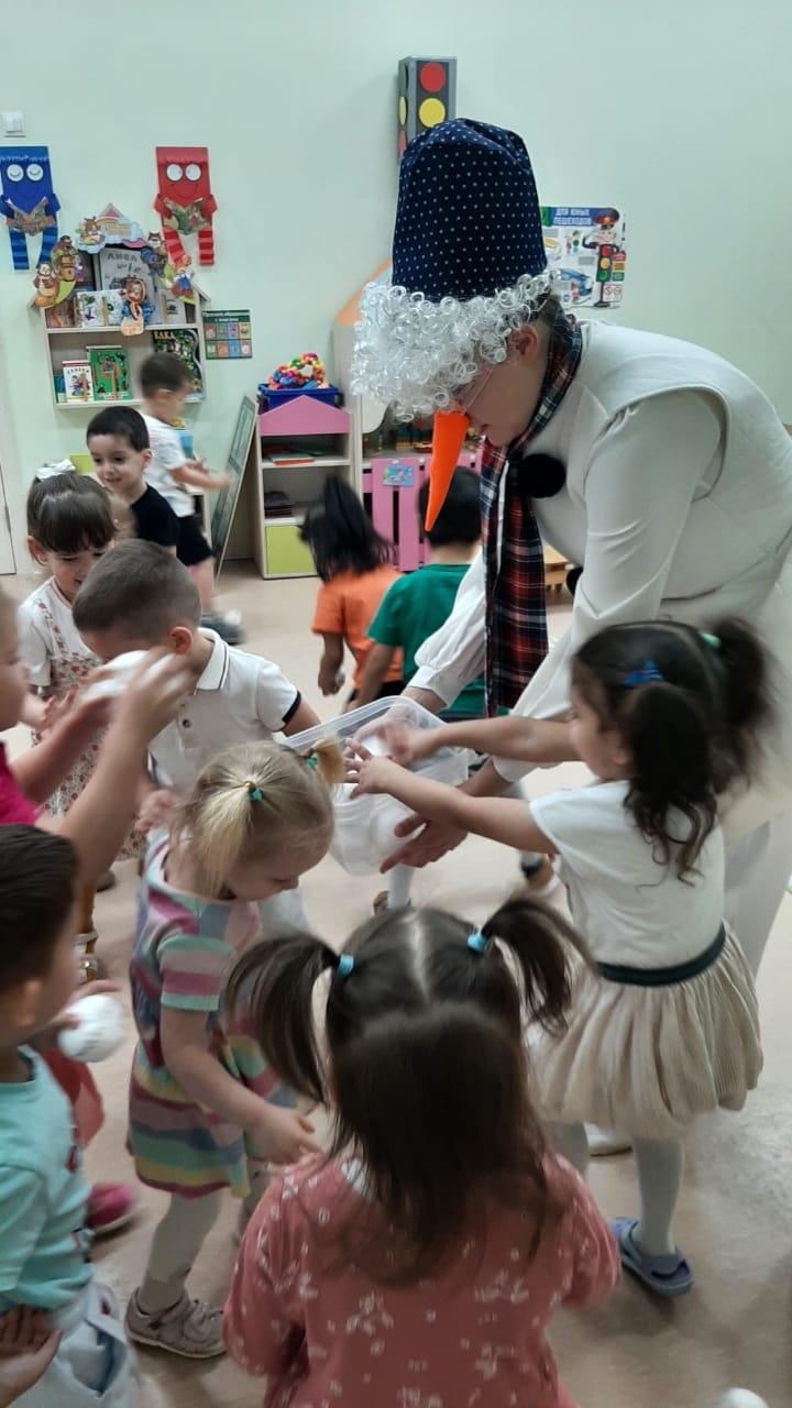 "День снеговика"В преддверии международного дня рождения Снеговика к нам в гости пришел Снеговик, который поделился своей грустью из-за отсутствия друзей. Вместе с детьми мы решили помочь ему и смастерили снеговиков-друзей.