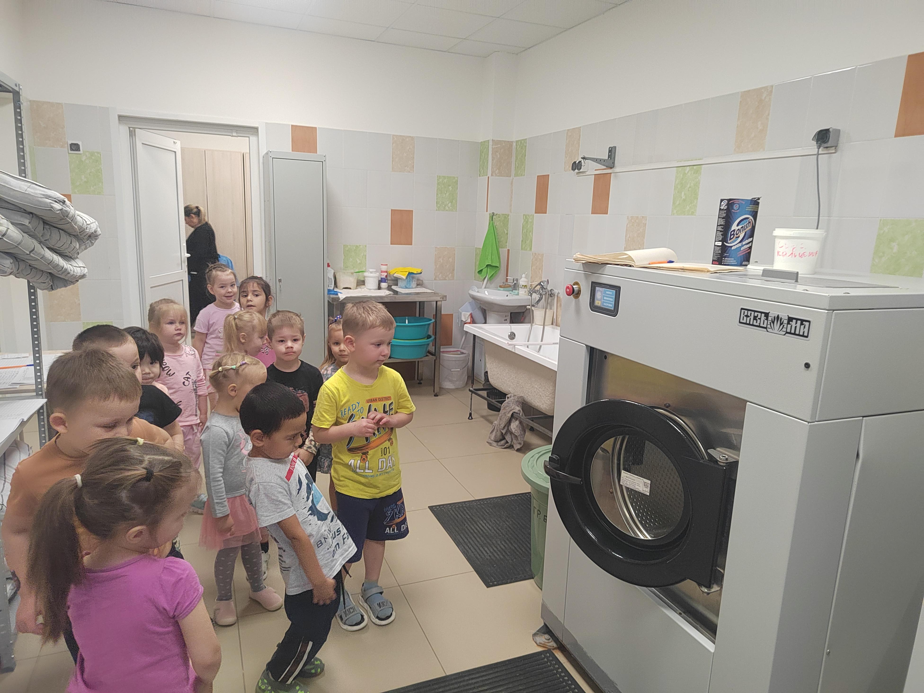 Сегодня воспитанники группы "Карапузики" совершили познавательную экскурсию в прачечную. Дети с интересом наблюдали за процессом, узнавая, как из грязного белья появляется чистое, как происходит глажка большого объема вещей и кто трудится над тем, чтобы в саду всегда был порядок.