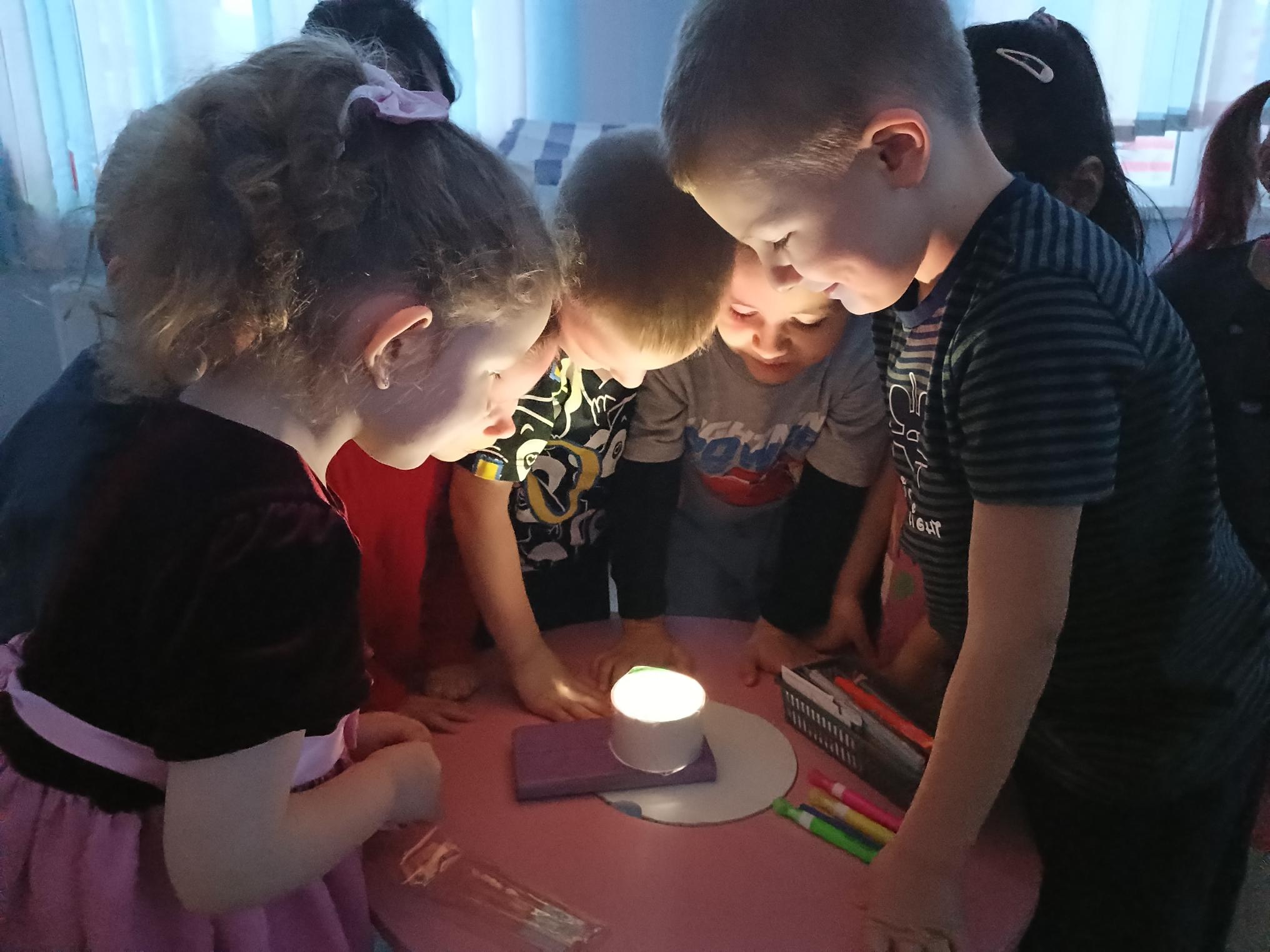 Юные исследователи из группы «Капитошки» устроили настоящее световое шоу! Взяв скотч и фломастеры, они создали на нём разноцветный рисунок. Когда дети направили на творение луч фонарика, на стене заиграла красивая радуга. Такой простой эксперимент в игровой форме раскрыл ребятам секреты света и цвета.