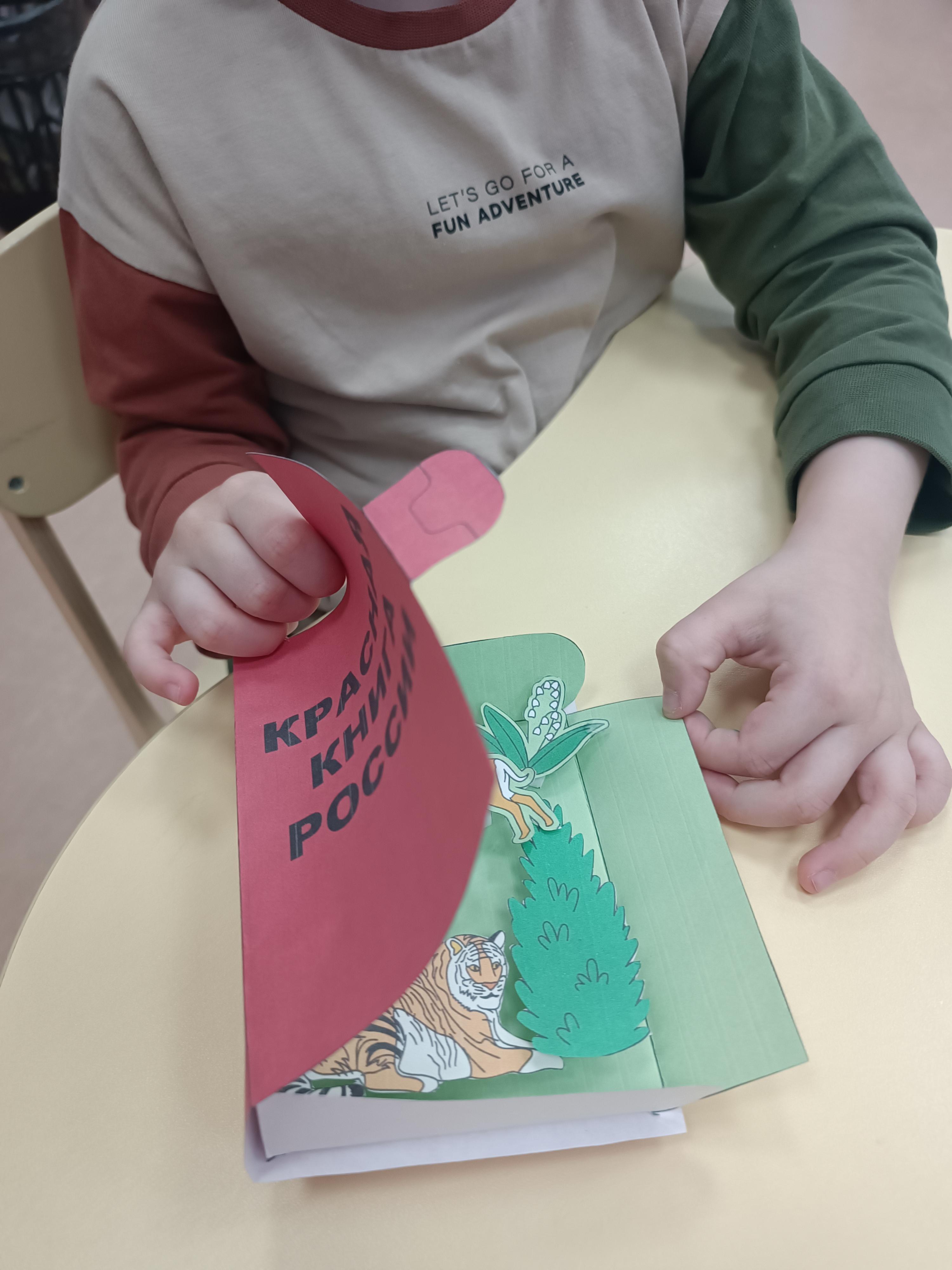 Воспитанники группы "Капитошки" отправились в увлекательное путешествие по страницам этого удивительного издания. Они узнали о том, как создавалась Красная книга, а также о редких животных, растениях , насекомых России, занесённых в неё. Ребята выяснили, почему некоторые виды животных исчезают, и что делают люди для их защиты и восстановления численности. Чтобы лучше запомнить полученную информацию, ребята приняли участие в играх. В завершение они создали макет Красной книги и каждый свою Красную книгу.