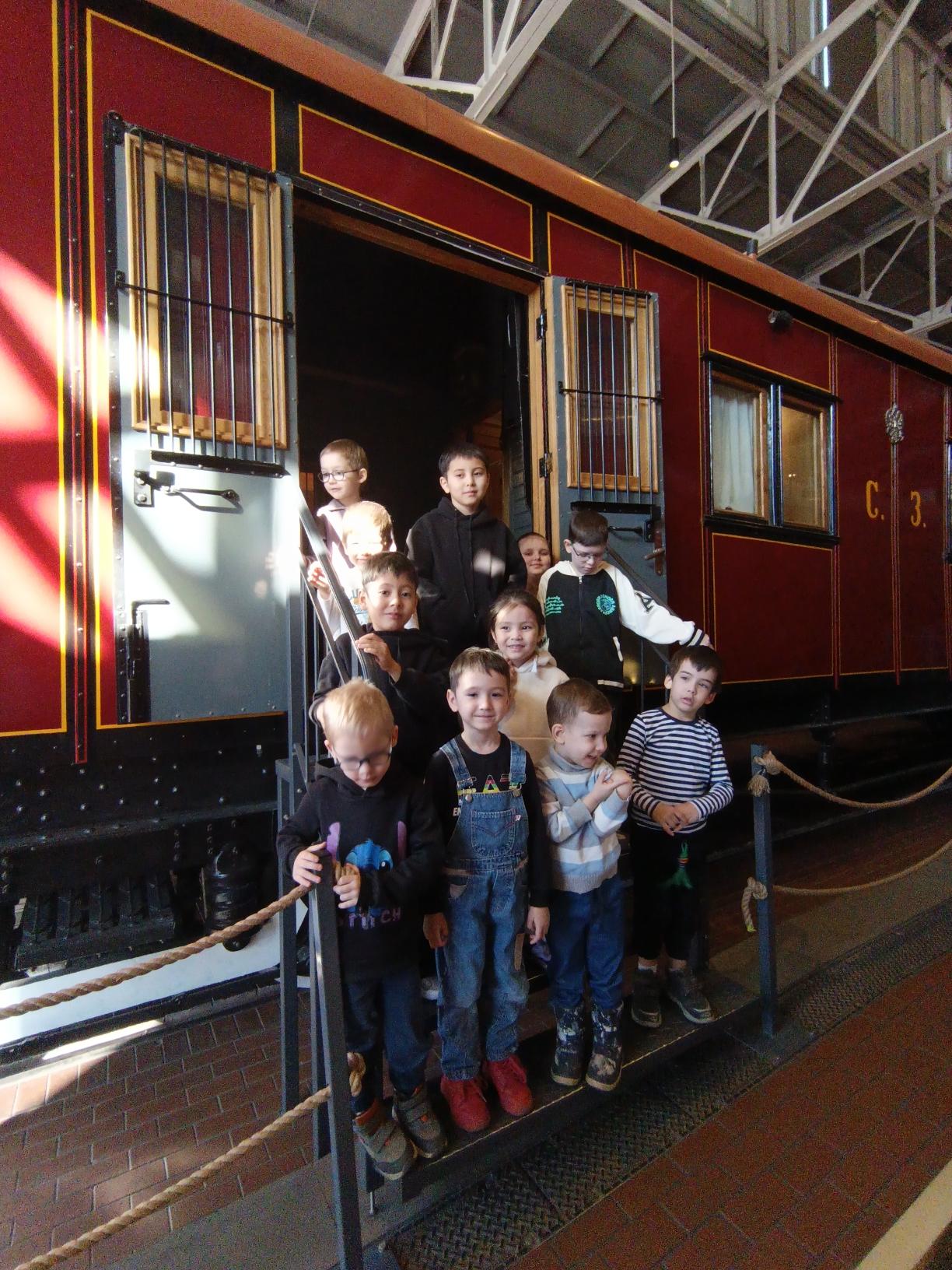 Ребята из группы "Капитошки" отправились в удивительный мир — "Музей железных дорог". Уже на пороге детей встретили огромные паровозы, которые, казалось, вот-вот отправятся в путь. Первым делом дети заглянули в старинные вагоны. Внутри всё было необычным: деревянные полки для вещей и большие окна. Особенно всех заинтересовал медицинский вагон — здесь ребята увидели старинные койки, медицинские инструменты и даже настоящую аптечку. Экскурсовод рассказал, как раньше врачи помогали пассажирам прямо во время поездки. Не меньше впечатлений оставил деревянный вагон. Его стены были сделаны из тёплого дерева, а внутри пахло путешествиями и приключениями. Самым удивительным оказался вагон в разрезе. Ребята смогли увидеть, как устроены полки, где прячутся чемоданы и как работают тормоза. Всё было как на ладони — можно было потрогать и рассмотреть каждый механизм. Но настоящим открытием стало посещение платформы под паровозом. Дети осторожно спустились вниз и оказались прямо под огромным железным гигантом. Здесь они увидели массивные колёса, блестящие рычаги и даже заглянули в топку. А затем поднялись на смотровую площадку и посмотрели на поезд с высоты — он казался настоящим великаном! Эта экскурсия подарила ребятам море впечатлений и новых знаний. Теперь они знают, что железная дорога — это не только поезда, но и целая история, полная удивительных открытий и настоящих приключений.