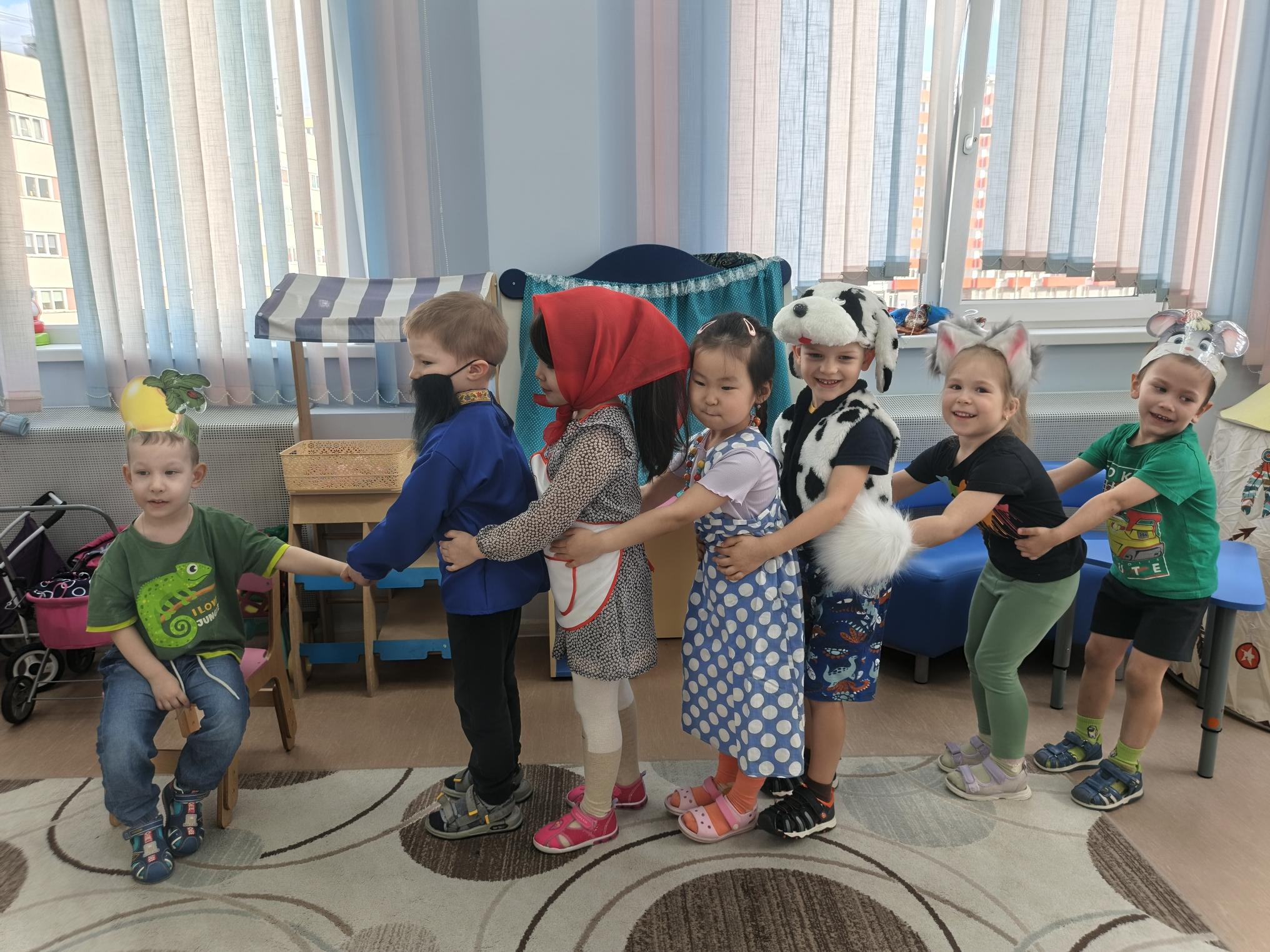 Но главным событием стало то, что ребята сами попробовали себя в роли актёров! Вместе с воспитателями они подготовили и разыграли небольшую сценку по известной сказке. Каждый смог почувствовать себя настоящим артистом: выучить роль, проявить эмоции и выступить перед друзьями. Это помогло детям стать увереннее, развить речь и воображение.
