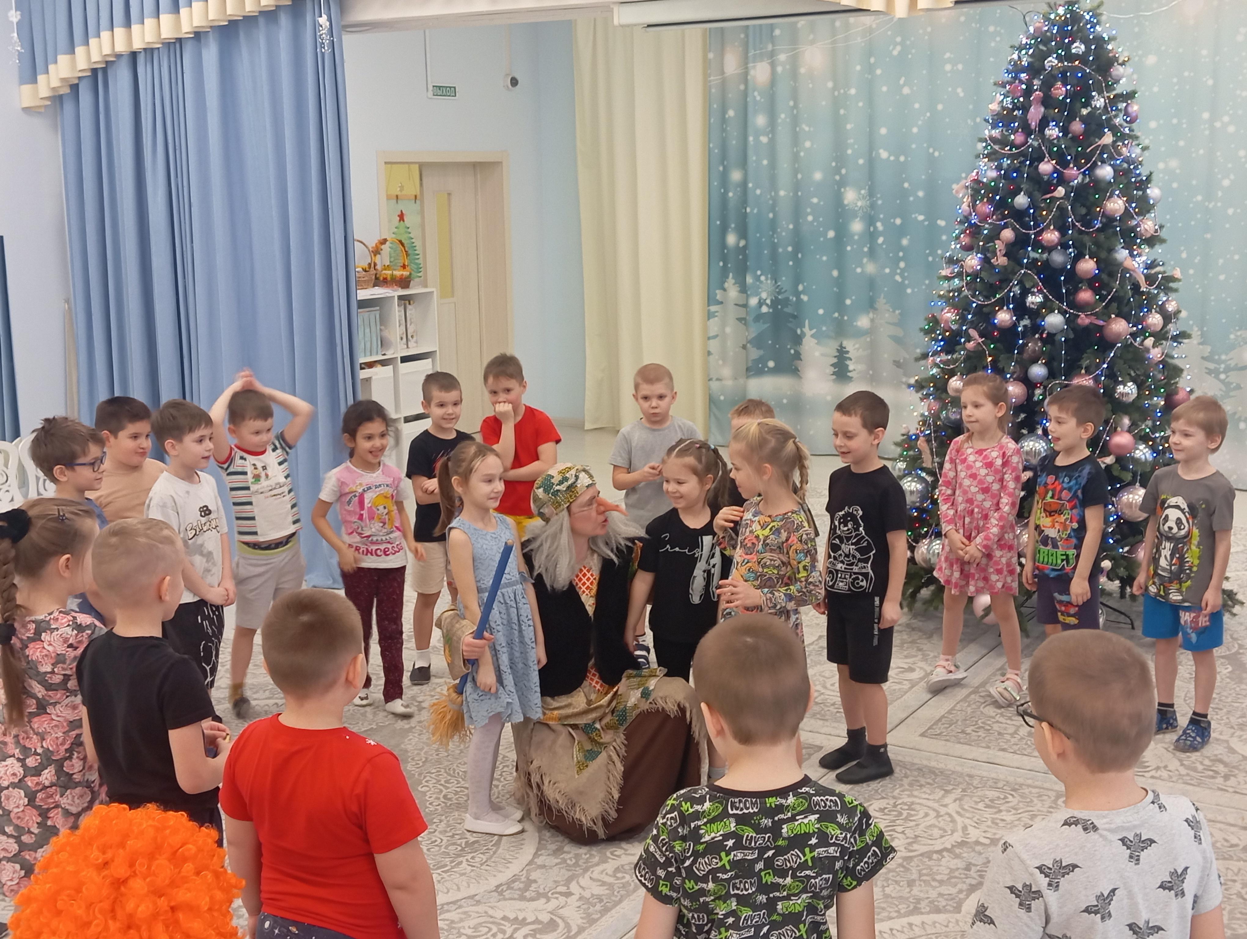 12 января к нам в сад пришло письмо от Деда Мороза. Он попросил вернуть ёлочку в лес. Ребята вместе с Домовёнком Кузей и Бабой Ягой играли в игры и водили хороводы. Все вместе мы погасили на ёлочке огоньки и попрощались с зелёной красавицей до следующего года.