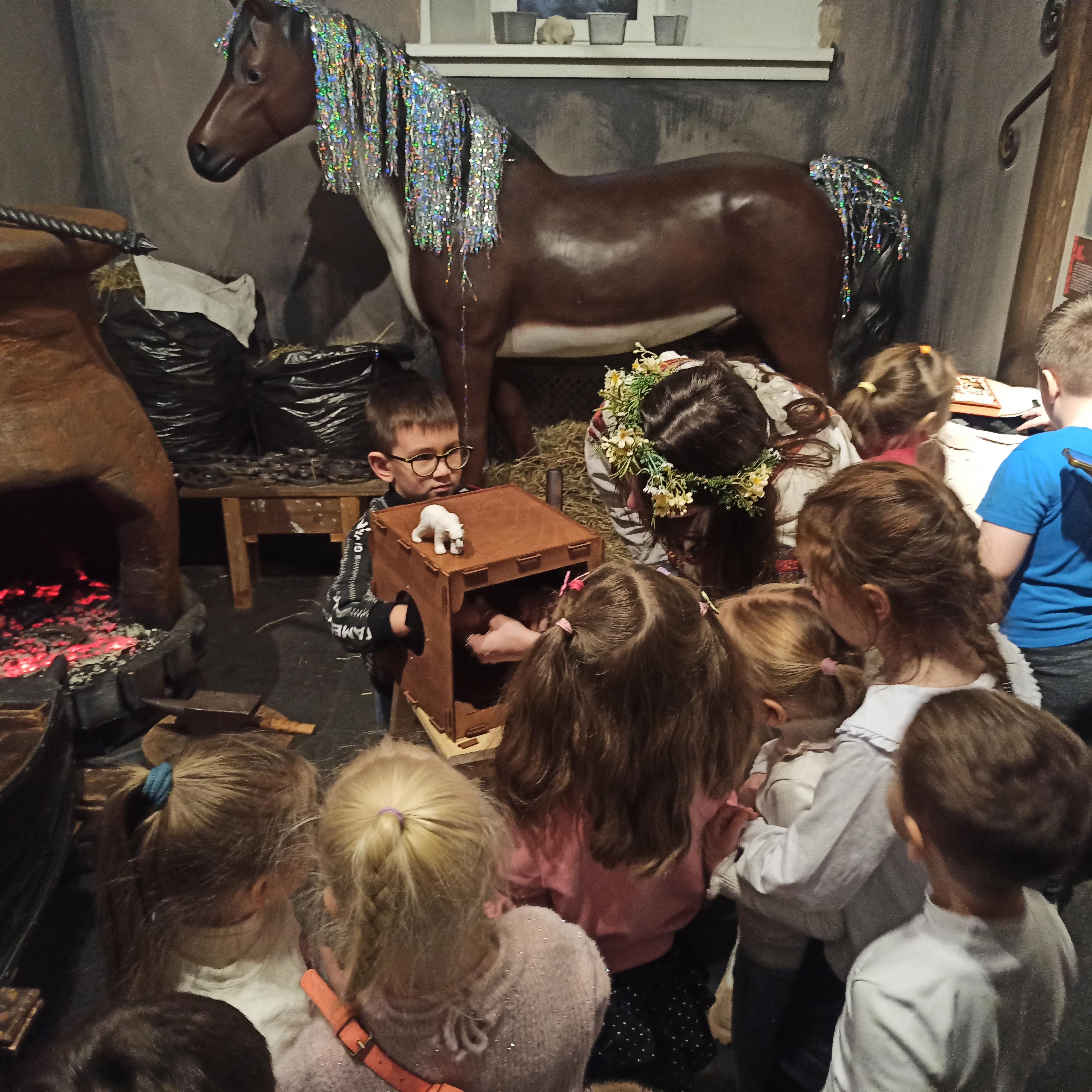 Новогодние чудеса продолжаются. Дети обнаружили под ëлкой сундучок с игрушками - маленькими лошадками. А ещё узнали, что такое диафильмы. Посмотрели сказку "Мороз Иванович", с помощью " волшебного фонаря".