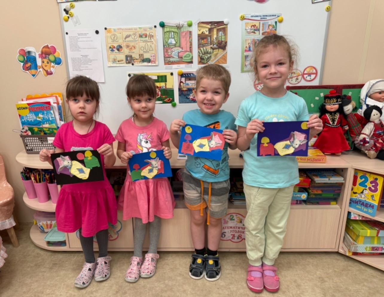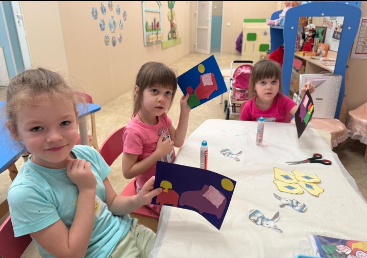 Мы с ребятами разыграли маленький сюжет... Оказавшись на лесной опушке повстречались с зайкой, он горько плакал, потому что лиса выгнала его из избушки в которой он жил. Зайка построил новый домик, но там не было мебели и мы с ребятами решили ему помочь. Зайка и ребята остались довольны, ведь у них так всё здорово получилось.